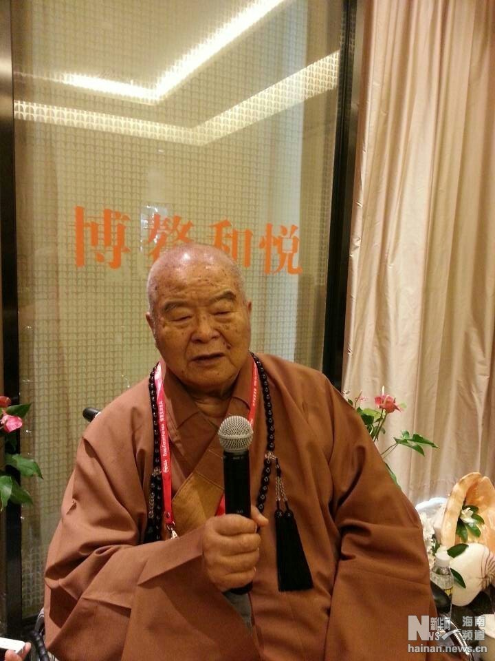 因为视力不好兼不良于行,星云大师坐在轮椅上对记者的提问耐心地一一作答。第三次造访海南,他深有感触:“海南和台湾合起来是中国的两只眼睛,看到远处的海洋;也是中国的双臂,守卫着国家的门户。两个宝岛异曲同工”。