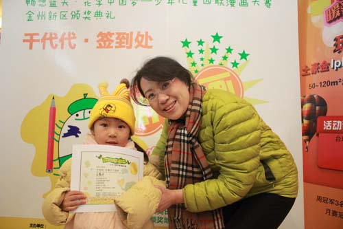 发挥社会使命,推动公益事业发展,为增强少年儿童生态文明意识,“畅想蓝天,花季中国梦”少年儿童四联漫画大赛金州新区颁奖仪式在金石滩万达金石天城隆重举行. 此次大赛得到了党和政府的高度重视,中共大连市委统战部、大连市精神文明建设指导委员会办公室、共青团大连市委员会、大连市文学艺术界联合会、大连市教育局、大连环境保护局、大连市文化广播影视局、大连市公安局、大连市城市建设管理局、大连市归国华侨联合会、大连市无党派人士联谊会联合主办,大连市有10余万3-12岁少年儿童参与,社会普及度极高。 本次比赛主要为了在少年儿童心中播撒绿色的种子,以绘画的手法,四联漫画的形式,再通过自己编写的环保故事或者小创意,来表达少年儿童心中的公益梦想。同时有机会获得“绿色社会”的认可,通过比赛激发少年儿童的创造力和幽默感。从小培养少年儿童树立公益思想,使得这些在思维领域极具天赋的少年儿童们,从小畅想承担起拯救因气候变化而日渐恶劣的自然环境的责任。敢于担当,让中国梦盛开在花季。 此次大赛设立5个奖项:阿布林奖(综合表现)、当当虫奖(环保畅想)、嘻嘻姆奖(幽默创意)、果果木奖(绘画技能)、千代代(故事情节);除此之外本次大赛特别设立组织奖及指导奖,用于表彰在比赛过程中有突出贡献的老师和学校们。其他县市区颁奖典礼将陆续举行,总决赛颁奖典礼将在2014年3月22日隆重举行,敬请关注。