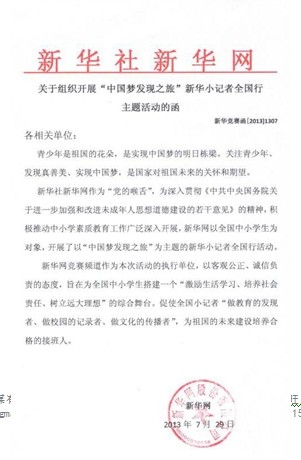 “畅想蓝天,花季中国梦”我是新华小记者活动,由新华社新华网、教育部关心下一代教育发展中心、中国下一代教育基金会、中国诺贝尔网、光明日报《考试》杂志社、小作家报社联合发起的一场全国小记者选手选拔活动。